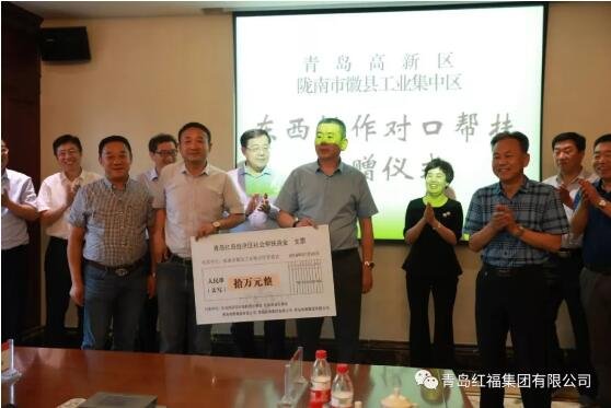 此次对接扶贫工作,青岛高新区向徽县园区捐赠330万项目帮建资金;由青岛红福集团、青岛浩源集团、青岛牧野集团三家企业共同集资10万元作为社会帮扶资金。